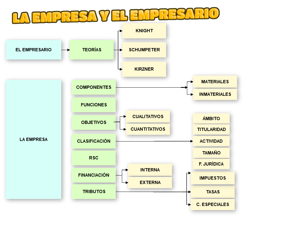 Empresa: Conjunto de factores productivos (humanos, técnicos y financieros) organizados y coordinados por la dirección de la empresa, dedicada a la fabricación y venta de bienes y servicios y que busca alcanzar ciertos objetivos. Estos objetivos los establece el empresario, persona que además coordina los factores productivos. Presta atención que en ningún momento se dice que el empresario sea el dueño de la empresa.