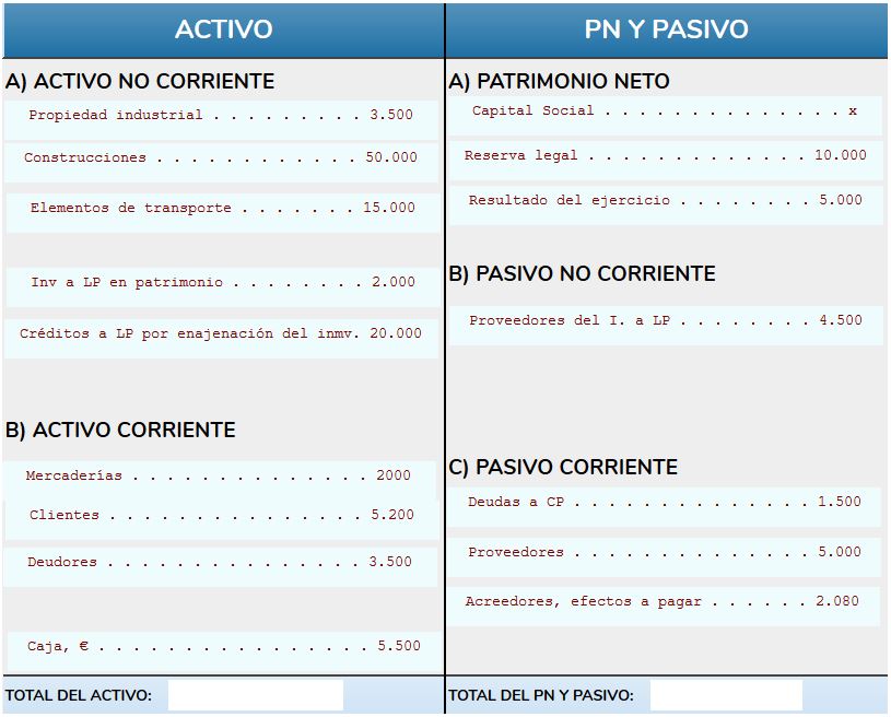 b) Calcula la cifra del capital social y ordena las cuentas según el PGC.