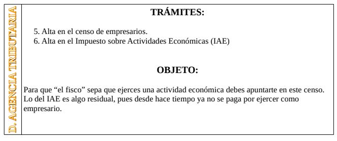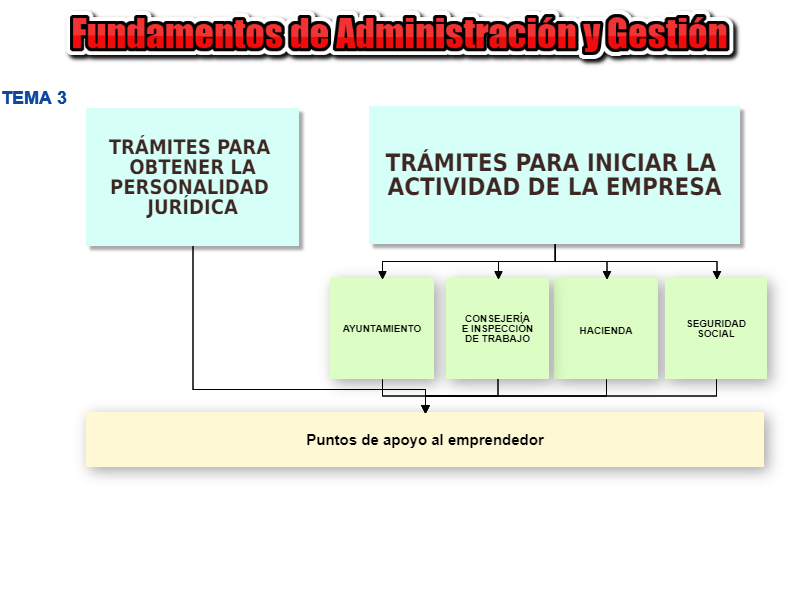 En el tema 3 veremos qué pasos hay que dar para crear una empresa. No son pocos ni son fáciles, así que sólo se trata de que te hagas una idea general de dichos trámites. Eso sí, también verás que en los PAEs cuentas con asesoramiento gratuito e incluso te pueden tramitar en algunos casos, la creación de tu empresa.